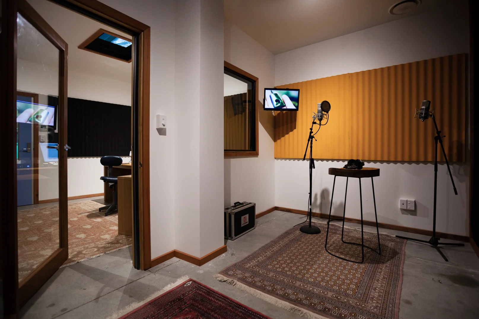 The recording booth is designed to be a multi use space - big enough that a few people can comfortably voice at one time and also with enough space for ADR, Foley recording and small music recording sessions.